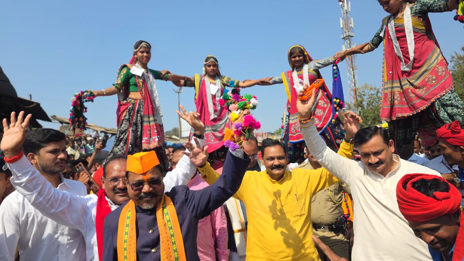 यावेळी धडगावमधील पोलीस पाटलांची मानाची मिरवणूक काढण्यात आली. शासकीय कार्यालये तसेच शहरातील व्यापारी प्रतिष्ठानांच्या वतीने त्यांचा पारंपरिक पद्धतीने सन्मान करण्यात आला. डोंगरदऱ्यांतून मोठ्या संख्येने आदिवासी बांधव या सोहळ्यात सहभागी झाले होते.