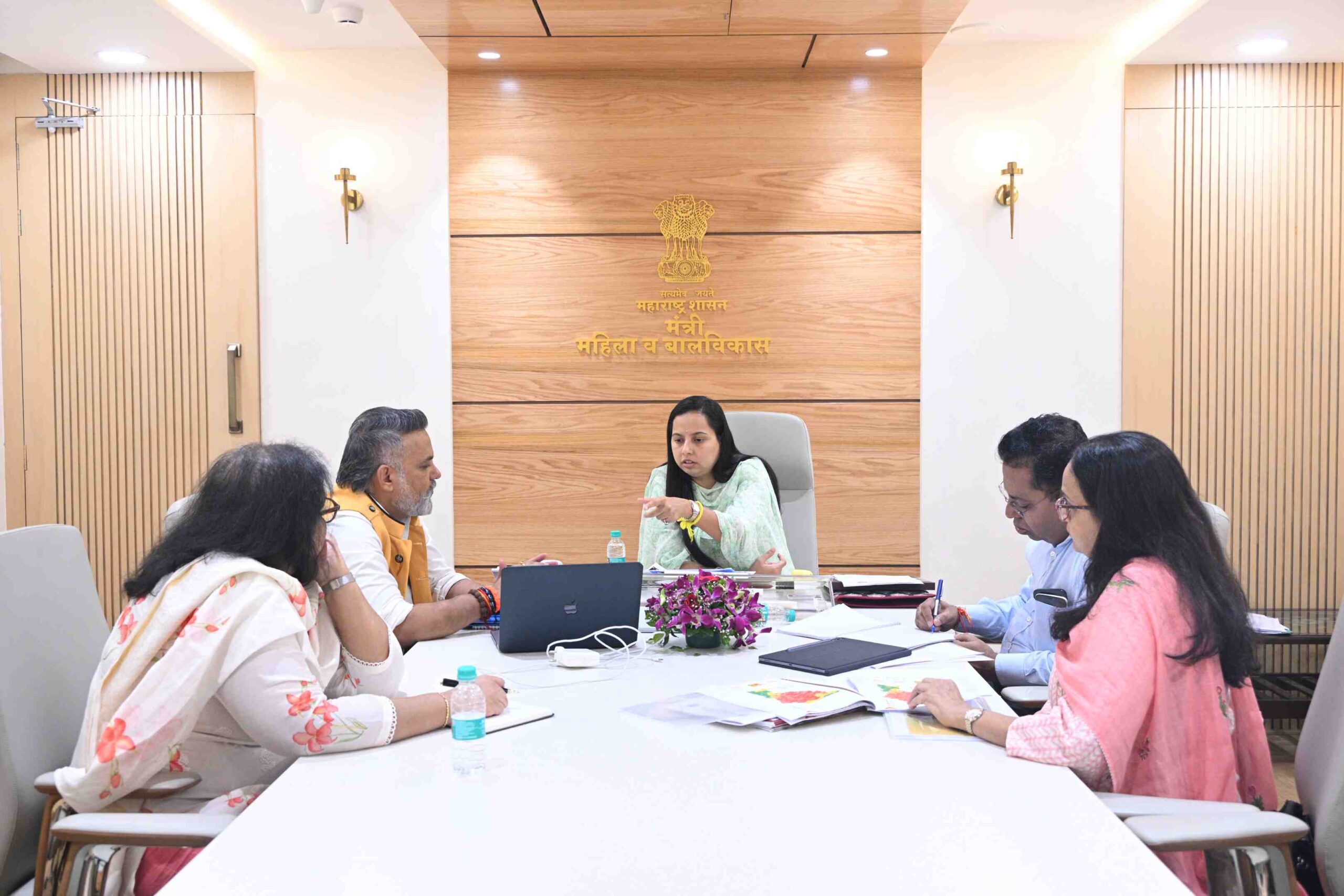बालविवाह प्रथा राज्यातून समुळ नष्ट करण्याच्या दृष्टीने आज मंत्रालयात युनिसेफ संस्थेसोबत चर्चा करण्यात आली. यावेळी युनिसेफचे राज्याचे मुख्य अधिकारी संजय सिंग, बालसंरक्षण तज्ज्ञ अल्पा वोरा, न्युट्रीशीयन तज्ज्ञ राजी नायर उपस्थित होते.