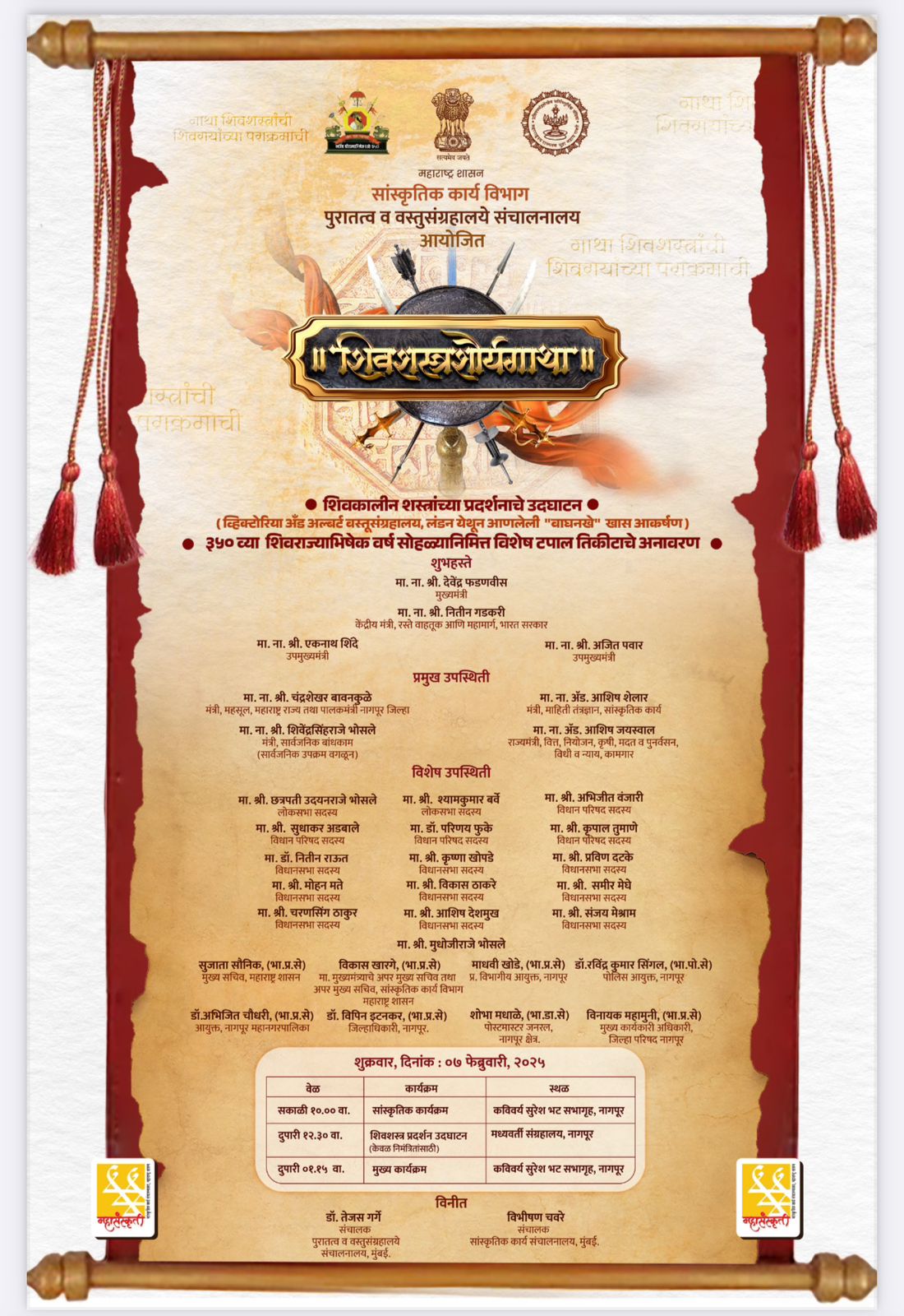 या कार्यक्रमास खासदार डॉ. अमोल कोल्हे प्रमुख पाहुणे होते. आपल्या भाषणात ते म्हणाले की, शिवाजी महाराज हे केवळ महाराष्ट्रापुरते सीमित नसून संपूर्ण भारतभूमीचे रक्षण करणारे थोर योद्धा होते. शिवरायांच्या दूरदृष्टीमुळे स्वराज्याची संकल्पना प्रत्यक्षात आली. नव्या पिढीने त्यांचा आदर्श घेणे ही काळाची गरज आहे. छत्रपती शिवाजी महाराज हे केवळ इतिहासापुरते मर्यादित नाहीत, तर ते एक विचारधारा आहेत. त्यांच्या नेतृत्वाचा आदर्श घेतल्यास देश अधिक सक्षम होईल.”