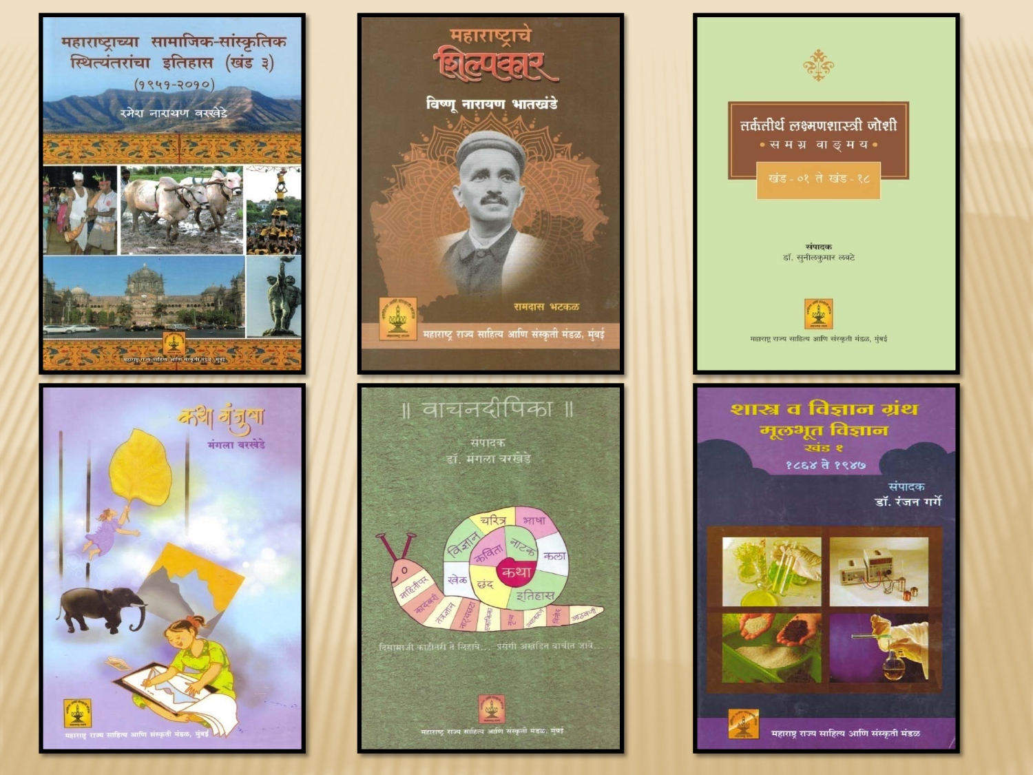 डॉ.रंजन गर्गे संपादित केलेले शास्त्र व विज्ञान ग्रंथ मूलभूत विज्ञान खंड १ (१८६४ ते १९४७) शास्त्र व विज्ञान ग्रंथ उपयोजित विज्ञान खंड २ (१८६४ ते १९४७) व शास्त्र व विज्ञान ग्रंथ गणित विज्ञान खंड ३ (१८६४ ते १९४७) हे तीन खंड मंडळाच्यावतीने प्रकाशित होत आहेत. डॉ.दिलीप धोंडगे यांनी मराठी वाङ्मयकोश खंड दुसरा भाग दोन ‘मराठी ग्रंथकार (दिवंगत)’ (इ.स.१९६० ते इ.स. २०००) हा खंड संपादित केला असून तो मंडळाच्यावतीने प्रकाशित होत आहे. या खंडामध्ये १९६० ते २००० पर्यंतच्या कालखंडातील दिवंगत साहित्यिकांची माहिती समाविष्ट आहे. वाङ्मयाच्या अभ्यासात हा ग्रंथ अत्यंत महत्त्वाचे संदर्भसाधन ठरणार आहे.