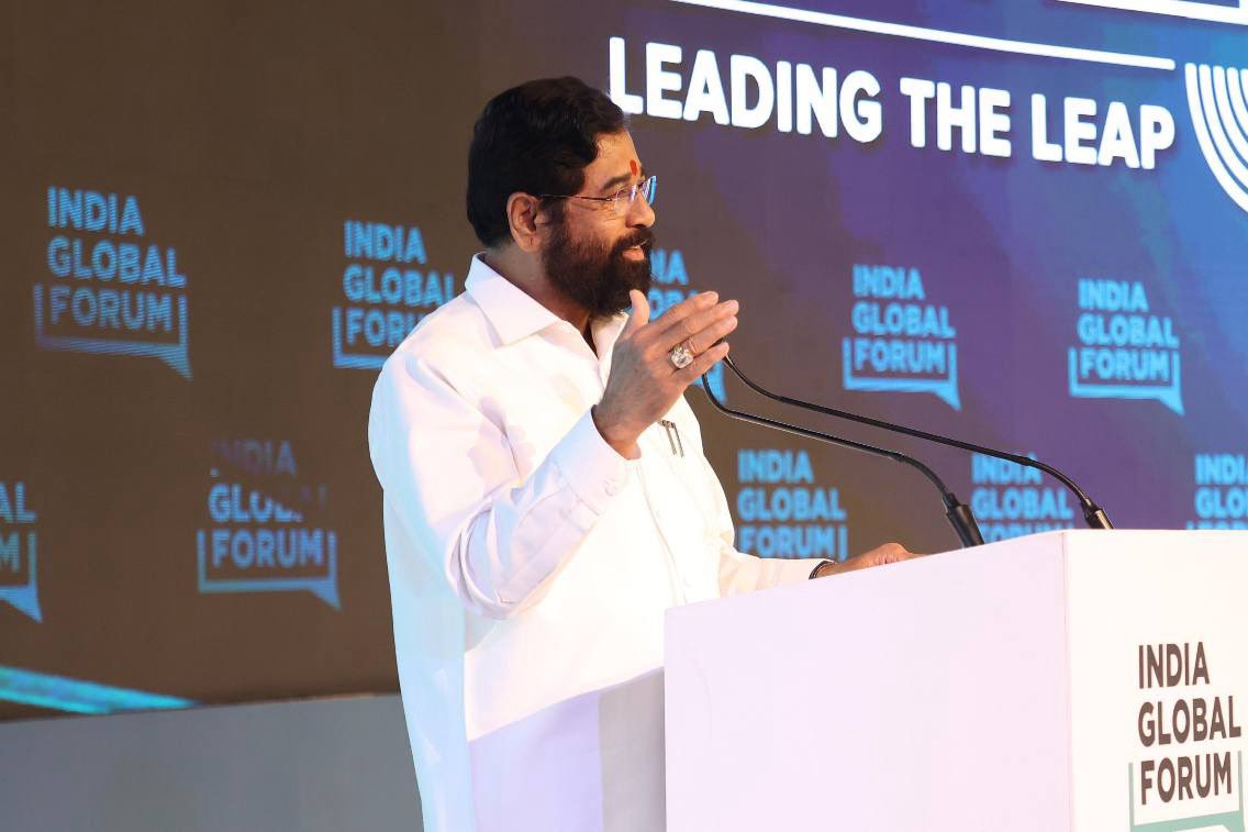 जियो वल्ड सेंटर येथे आयोजित इंडिया ग्लोबल फोरम २०२५ च्या कार्यक्रमात विविध सामंजस्य करार केल्यानंतर उपमुख्यमंत्री शिंदे बोलत होते.