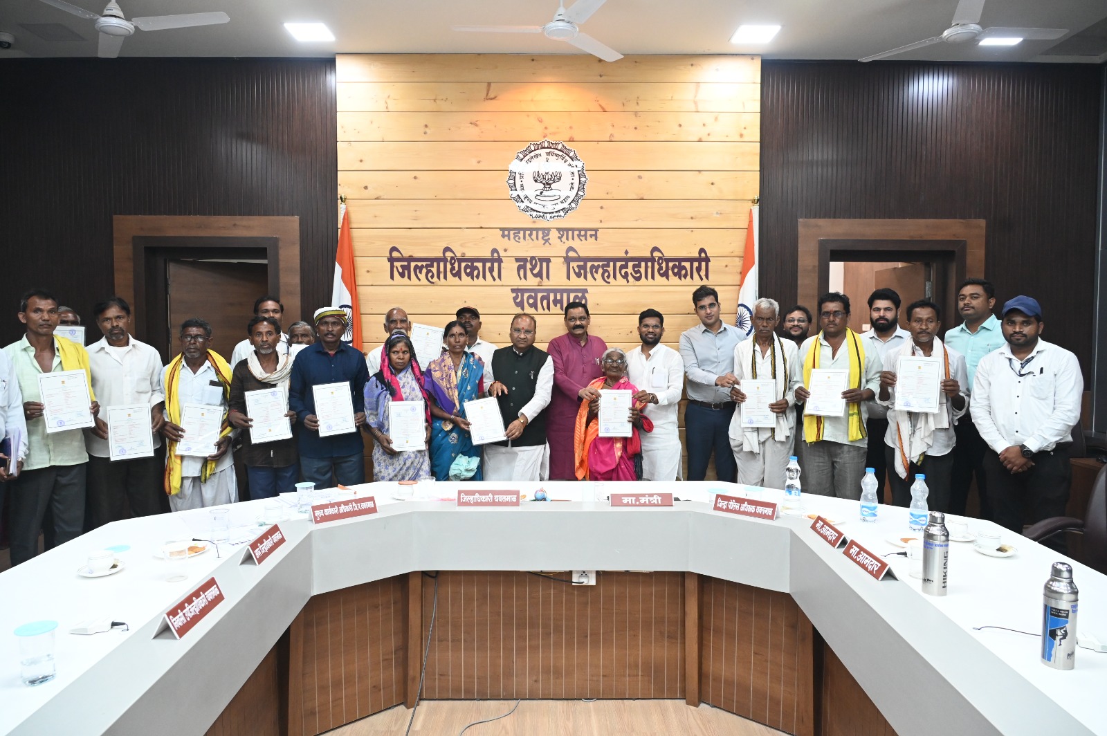 जिल्हाधिकारी कार्यालयातील महसूल भवन येथे आयोजित या वितरण कार्यक्रमप्रसंगी आ.राजू तोडसाम, आ.किसन वानखेडे, जिल्हाधिकारी विकास मीना, सहाय्यक जिल्हाधिकारी तथा पांढरकवडा एकात्मिक आदिवासी विकास प्रकल्पाचे प्रकल्प अधिकारी अमित रंजन, उपवनसंरक्षक धनंजय वायभासे, पुसदचे प्रकल्प अधिकारी अमोल मेतकर, उपविभागीय अधिकारी गोपाळ देशपांडे उपस्थित होते.
