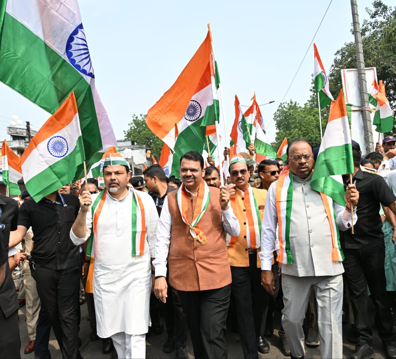 प्रत्येकाच्या हृदयात राष्ट्रप्रेमाची भावना जागृत करण्यासाठी व आपल्या वीर जवानांप्रती कृतज्ञता प्रतीत व्हावी यासाठी तिरंगा रॅलीचे आयोजन करण्यात आल्याचे सांगून मुख्यमंत्री म्हणाले, पहलगाम येथे झालेल्या दहशतवादी हल्ल्याचा सूत्रधार असणाऱ्या पाकिस्तानला प्रधानमंत्री नरेंद्र मोदी यांच्या नेतृत्वात ऑपरेशन सिंदूर राबवून चोख उत्तर देण्यात आले आहे. देशावरील कोणताही हल्ला यापुढे सहन केला जाणार नाही. त्याला तात्काळ कडक उत्तर दिले जाईल, हा संदेश या निमित्ताने आपण दिला आहे. ही मोहीम यशस्वी करण्यासाठी शौर्य गाजवणाऱ्या आपल्या वीर जवानांप्रती तिरंगा यात्रेच्या माध्यमातून कृतज्ञता व्यक्त करूया, असे आवाहनही श्री. फडणवीस यांनी केले.