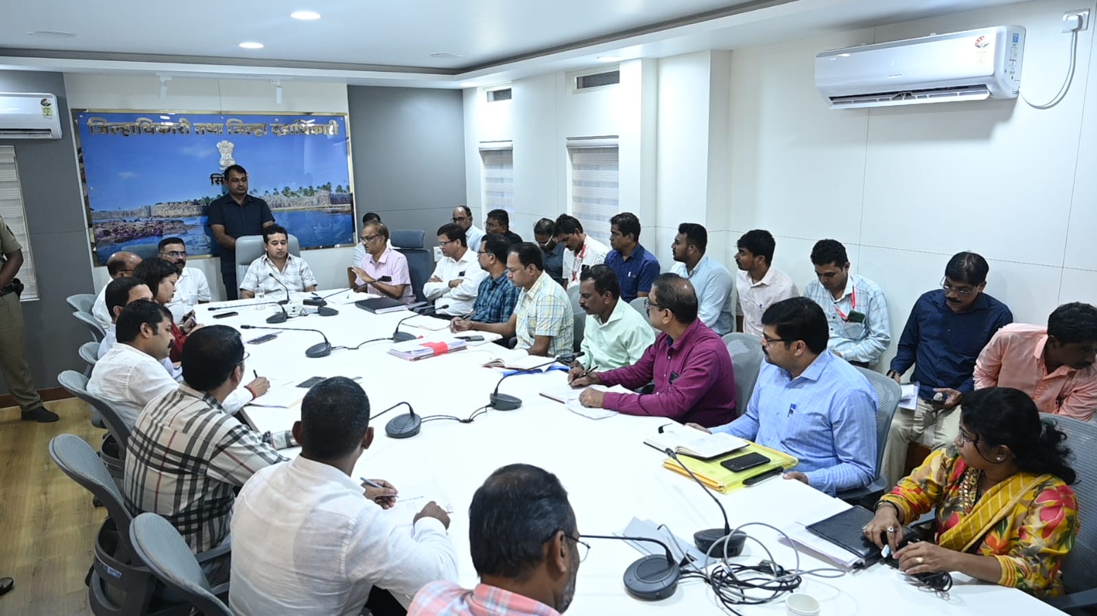 गणेशोत्सवाच्या अनुषंगाने पालकमंत्री नितेश राणे यांच्या अधक्षतेखाली आढावा बैठक पार पडली. यावेळी जिल्हाधिकारी अनिल पाटील, मुख्य कार्यकारी अधिकारी रवींद्र खेबुडकर, जिल्हा बॅकेचे अध्यक्ष मनीष दळवी, पी.एम. विश्वकर्मा समितीचे सदस्य प्रभाकर सावंत, अपर जिल्हाधिकारी शुभांगी साठे, निवासी उपजिल्हाधिकारी मच्छिंद्र सुकटे तसेच संबंधित विभागांचे अधिकारी उपस्थित होते.