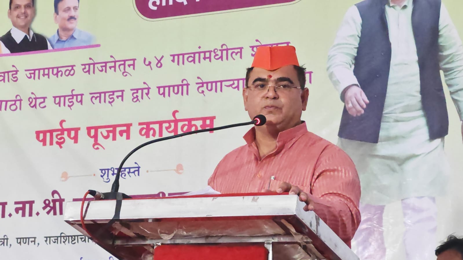 बेटावद (ता. शिंदखेडा) येथे सुलवाडे-जामफळ योजनेअंतर्गत 54 गावांतील शेतांना थेट पाईपलाईनद्वारे पाणी पुरवठा करणाऱ्या योजनेच्या जलवाहिनी पूजन सोहळ्यात ते बोलत होते. यावेळी माजी सभापती श्रीमती संजीवणी सिसोदे, धुळे पाटबंधारे प्रकल्प मंडळाचे कार्यकारी अभियंता संदीप सोनवणे, सुलवाडे जामफळ कनोली उपसा सिचंन विभागाचे कार्यकारी अभियंता संदीप पवार, सहाय्यक अभियंता विशाल खैरनार, पदाधिकारी तसेच ग्रामस्थ मोठ्या संख्येने उपस्थित होते.