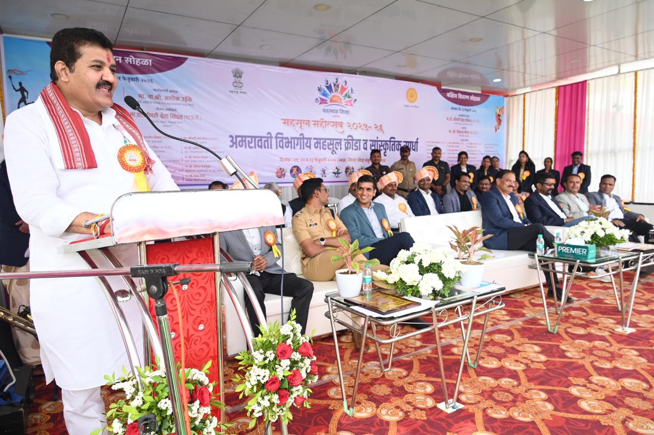 यवतमाळ, दि. २१ (जिमाका): यंदाच्या विभागीय महसूल महोत्सवाचे यजमानपद यवतमाळ जिल्ह्याला मिळाले असून या महोत्सवांतर्गत विभागीय महसूल क्रीडा व सांस्कृतिक स्पर्धांचे पालकमंत्री संजय राठोड यांच्या हस्ते शनिवारी उद्घाटन झाले. या स्पर्धांच्या माध्यमातून सर्वांनी नवी ऊर्जा आणि नवा संकल्प घेऊन आपल्या शासकीय कार्यात मोठे योगदान द्यावे आणि अमरावती विभागाचे राज्यस्तरावर नावलौकिक करावे, असे आवाहन पालकमंत्र्यांनी यावेळी केले.